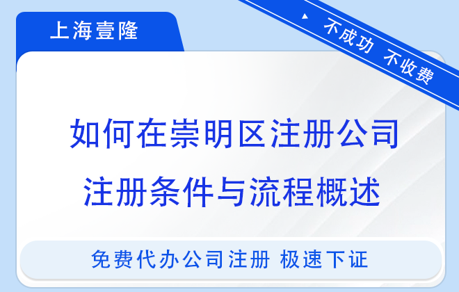 注冊崇明區(qū)公司需要滿足一定的條件,并按照流程有序進行。若您對崇明區(qū)注冊公司流程還不了解,可以交給上海壹隆代辦,無需本人到場,可提供注冊地址,歡迎咨詢!