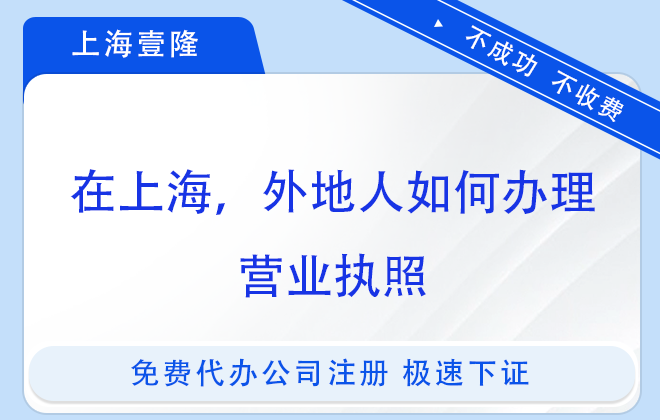 外地人在上海辦理營(yíng)業(yè)執(zhí)照需要明確企業(yè)類型、準(zhǔn)備必要資料、選擇辦理方式、提交申請(qǐng)并等待審核、領(lǐng)取營(yíng)業(yè)執(zhí)照以及完成后續(xù)步驟。上海壹隆可以幫您代辦營(yíng)業(yè)執(zhí)照,無(wú)需到場(chǎng),快至1天拿證,可提供注冊(cè)地址,歡迎咨詢!